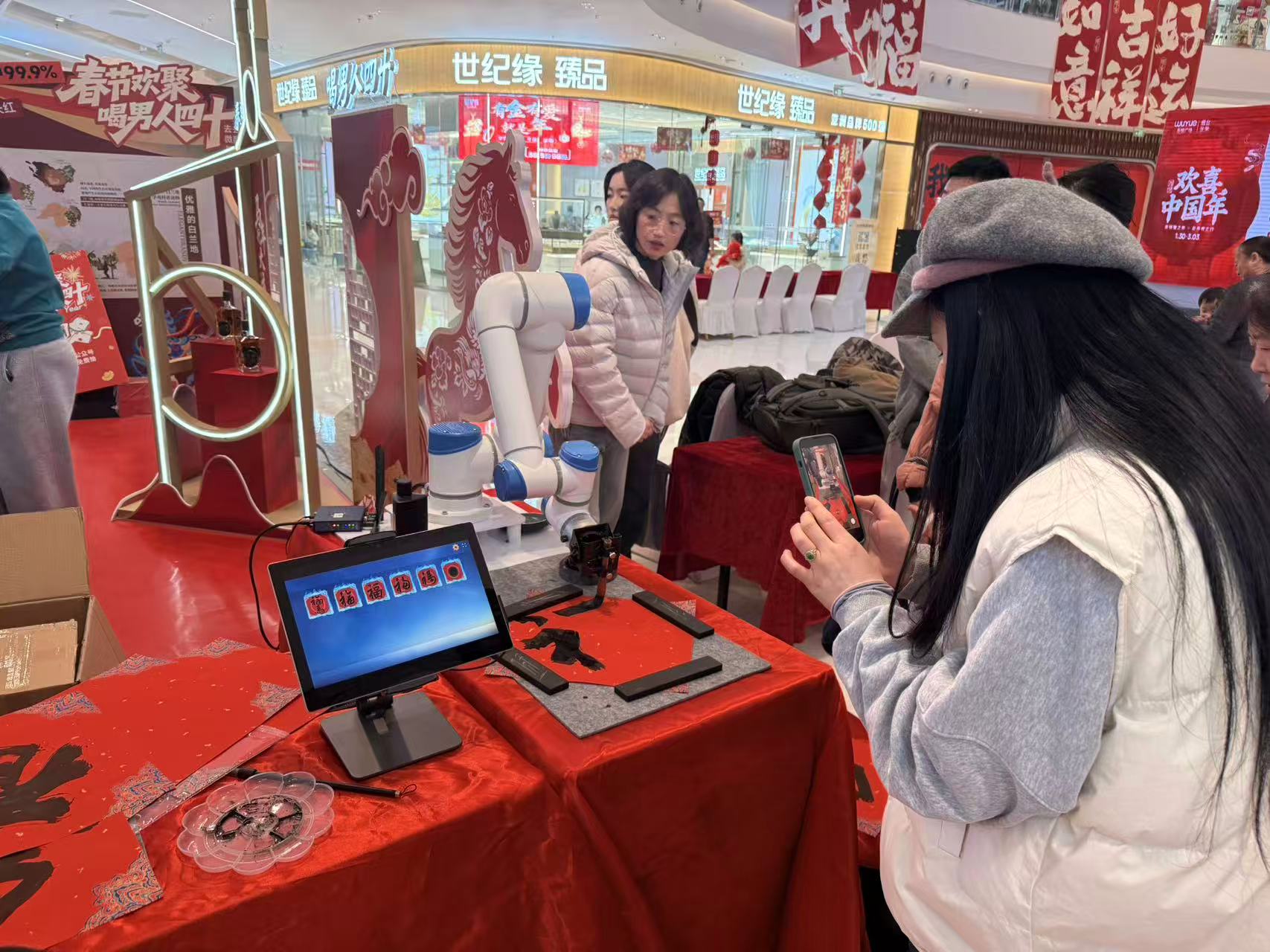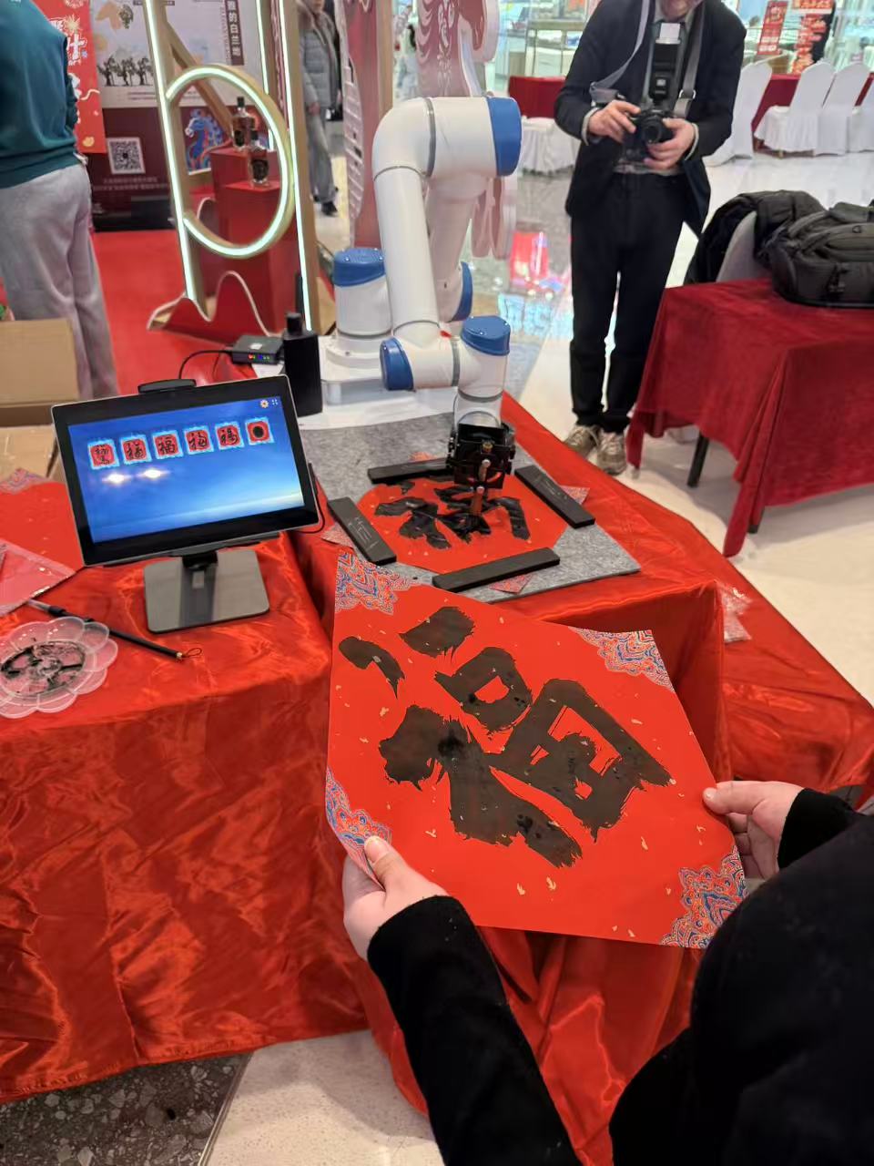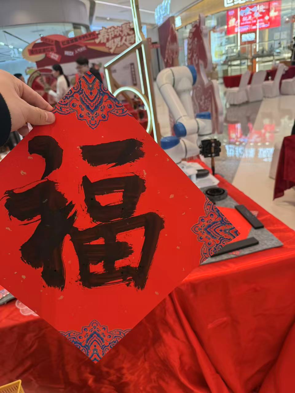 机器人机械臂同场写福,双福临门