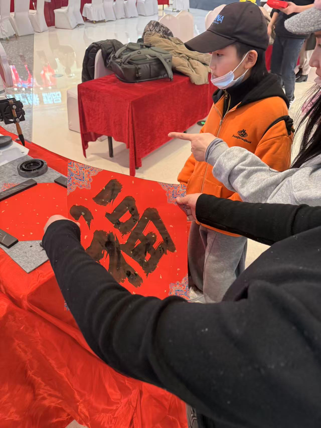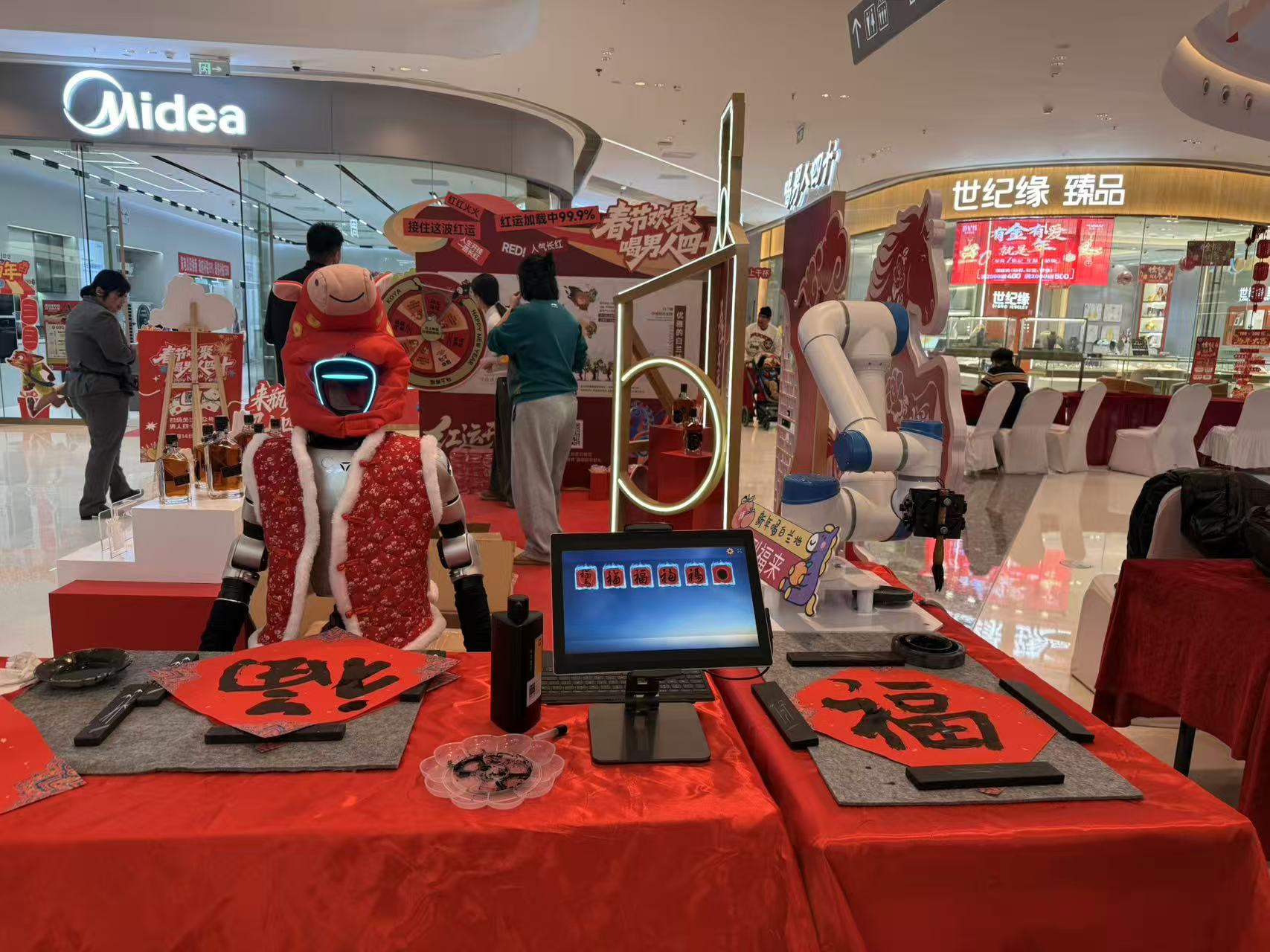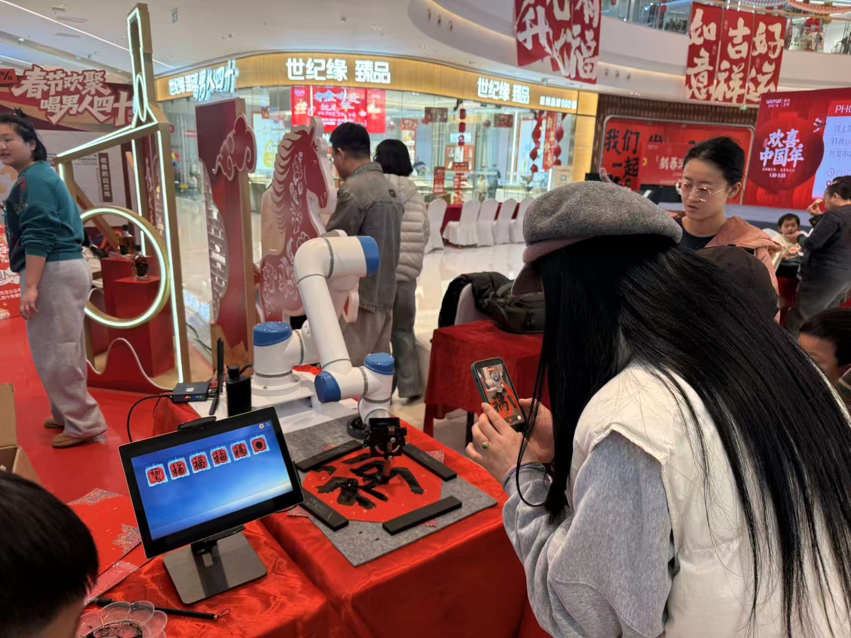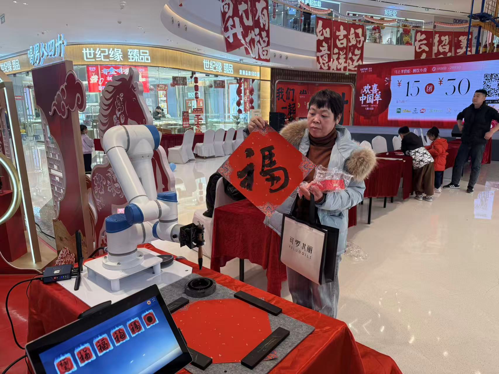 机器人机械臂同场写福,双福临门